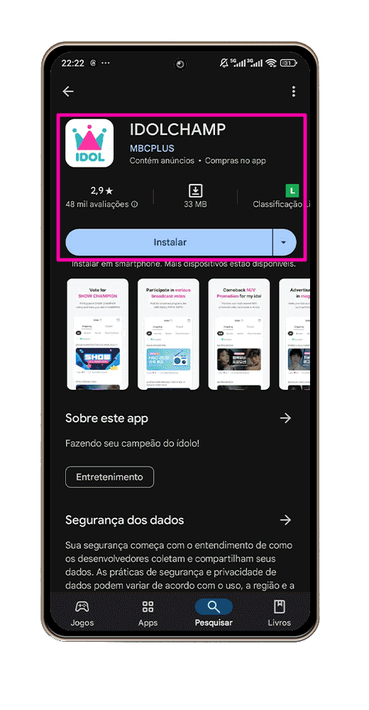- Baixe o aplicativo da Idol Champ.